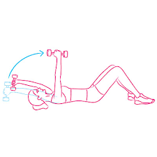 How to do it: Lie faceup with feet on floor, knees bent, a 5-lb dumbbell